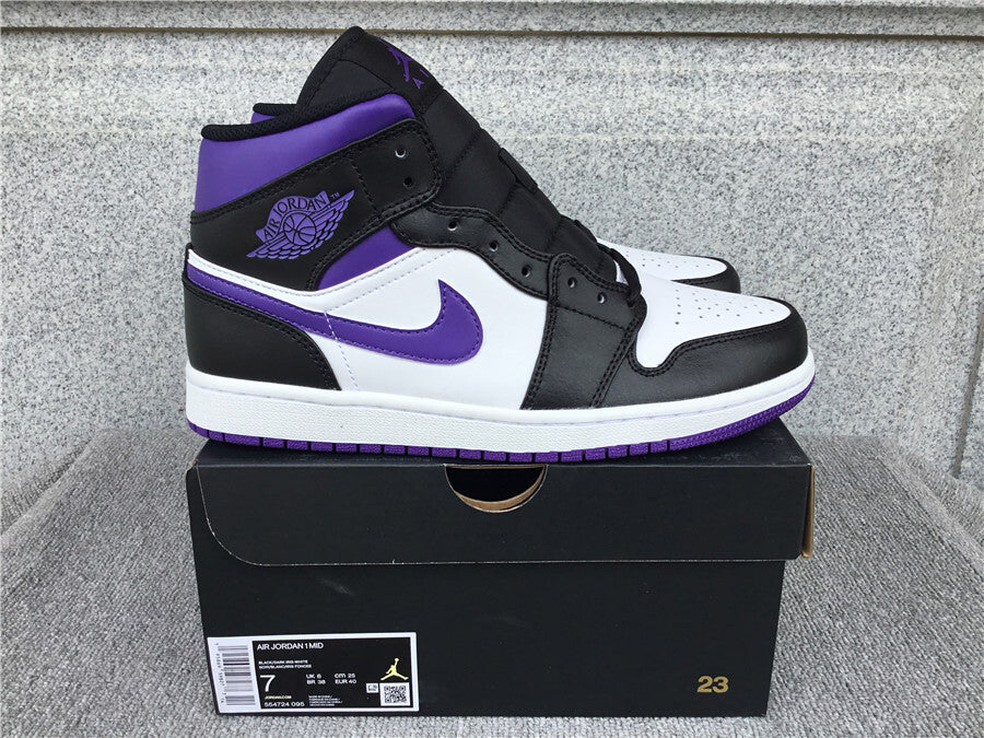 Air Jordan 1 Mid Black White Purple 554724-095