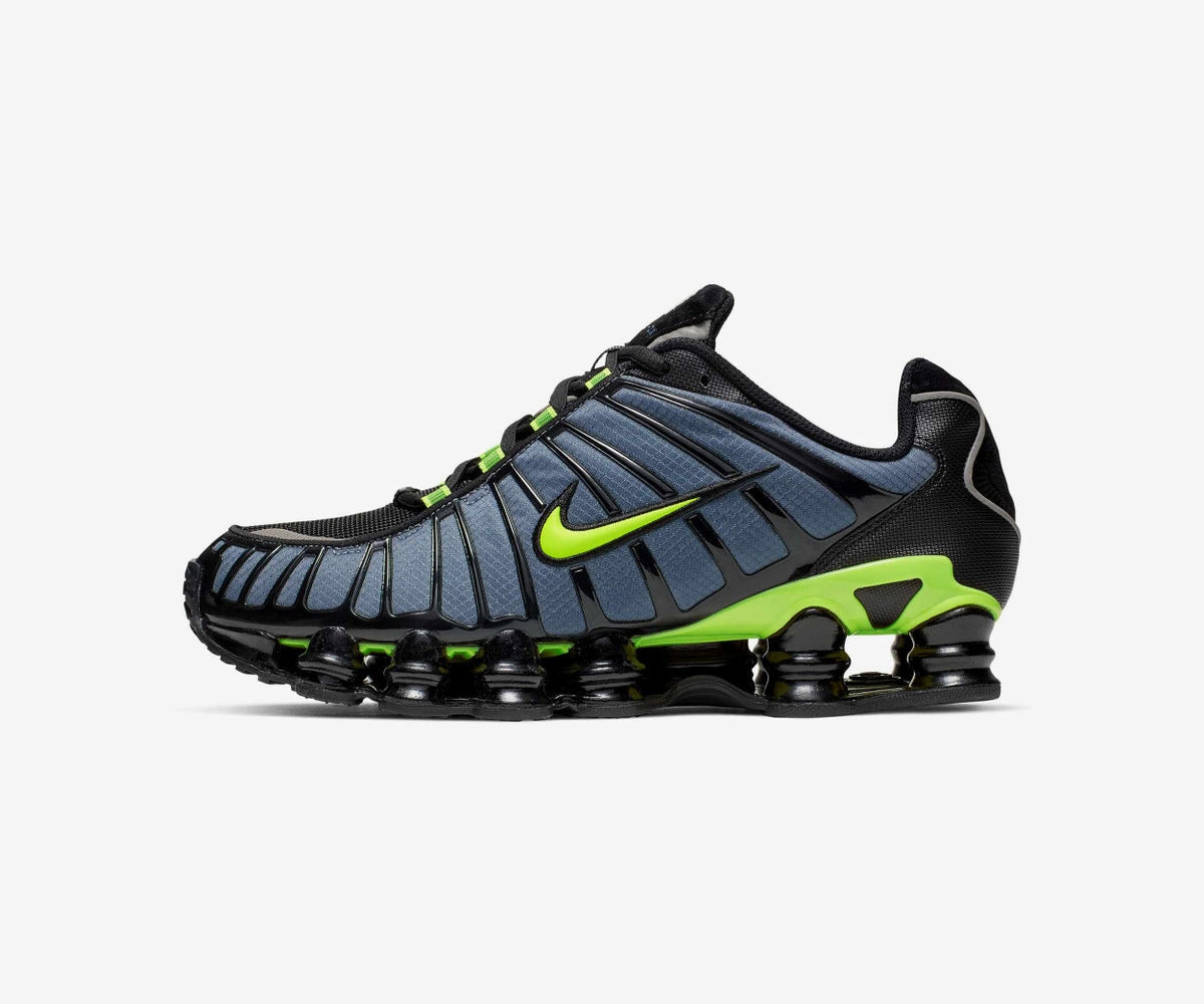 Las Nike Shox TL se lanzaron originalmente en 2003 y se basan en 16 años de investigación de Nike para desarrollar un sistema de amortiguación que absorbiera el impacto y devolviera energía. Su estética icónica de los 2000 la convirtió en un símbolo de la moda urbana, y en 2019, Nike relanzó el modelo con mejoras y diseños actualizados, manteniendo la tecnología Shox de amortiguación completa.